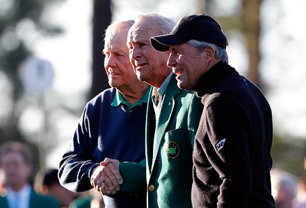By Dave Shedoski AUGUSTA, Ga. – On a cool, sunlit morning at the cathedral of golf, the Big 3 took a curtain call, and you couldn’t help but wonder if there will be another. It was glorious and poignant and bittersweet. Gary Player and Jack Nicklaus struck ceremonial tee shots Thursday at Augusta National Golf Club to kick off the 80th Masters while the senior member of the long-celebrated trio, fragile and yet resolute Arnold Palmer, could do no more than look on as a spectator from a chair